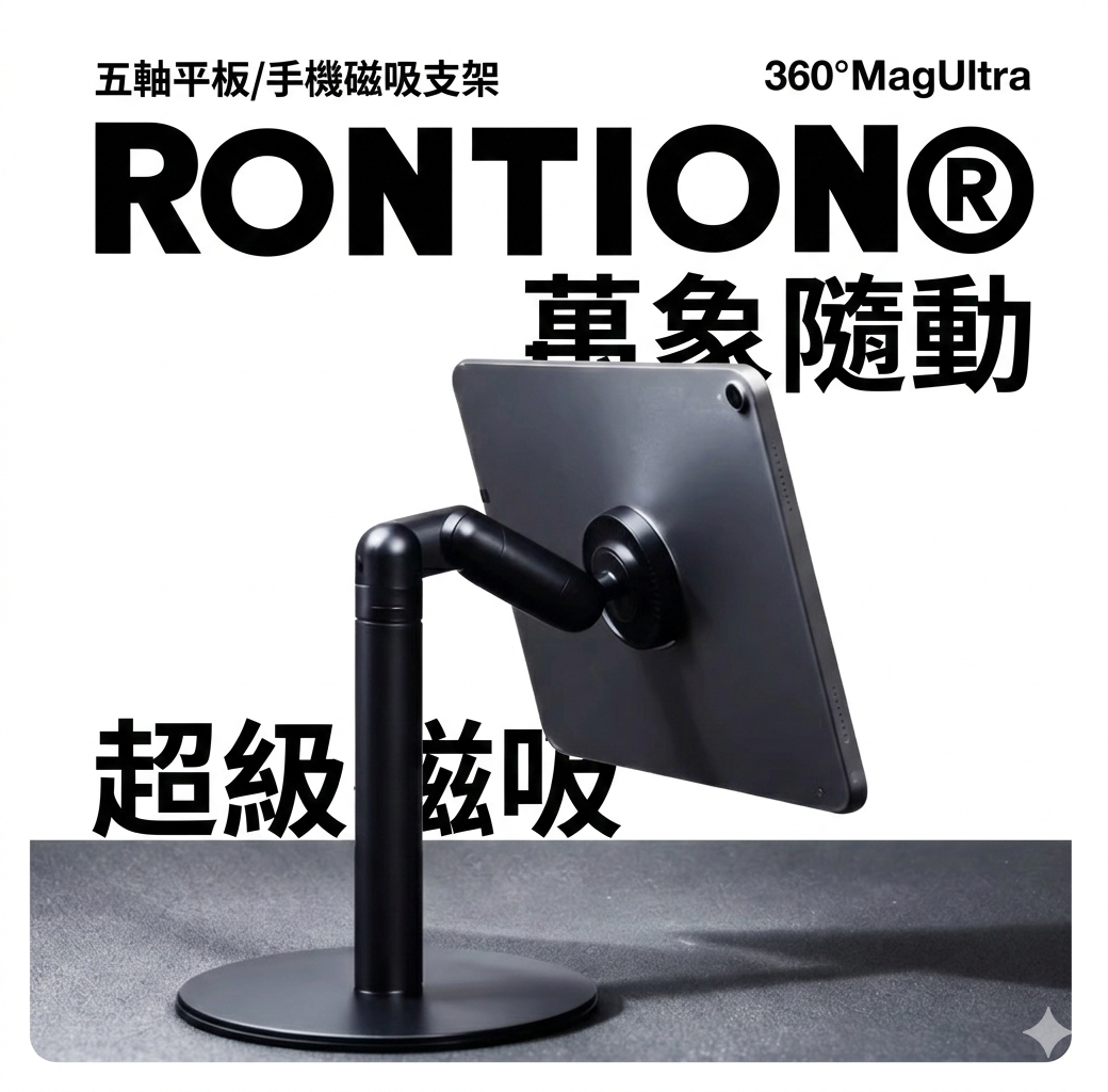 - 產品名稱: RONTION® 360° MagUltra 五軸磁吸機械支架